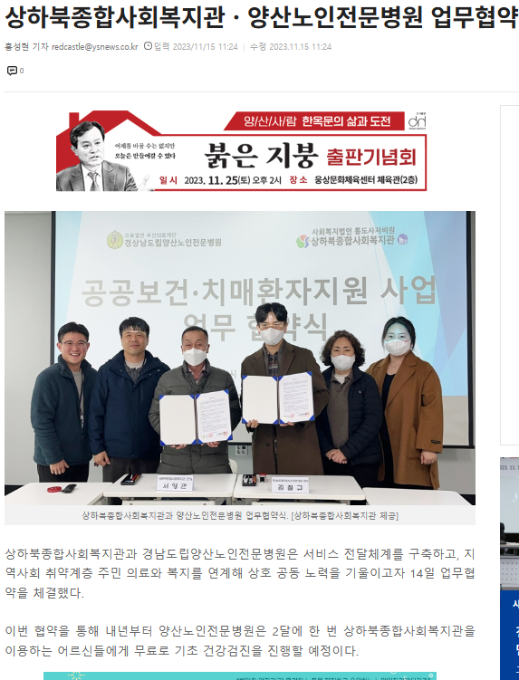 상하북면종합사회복지관과 치매 환자지원프로그램 사업 및 공공보건 업무 협약식을 가졌습니다.