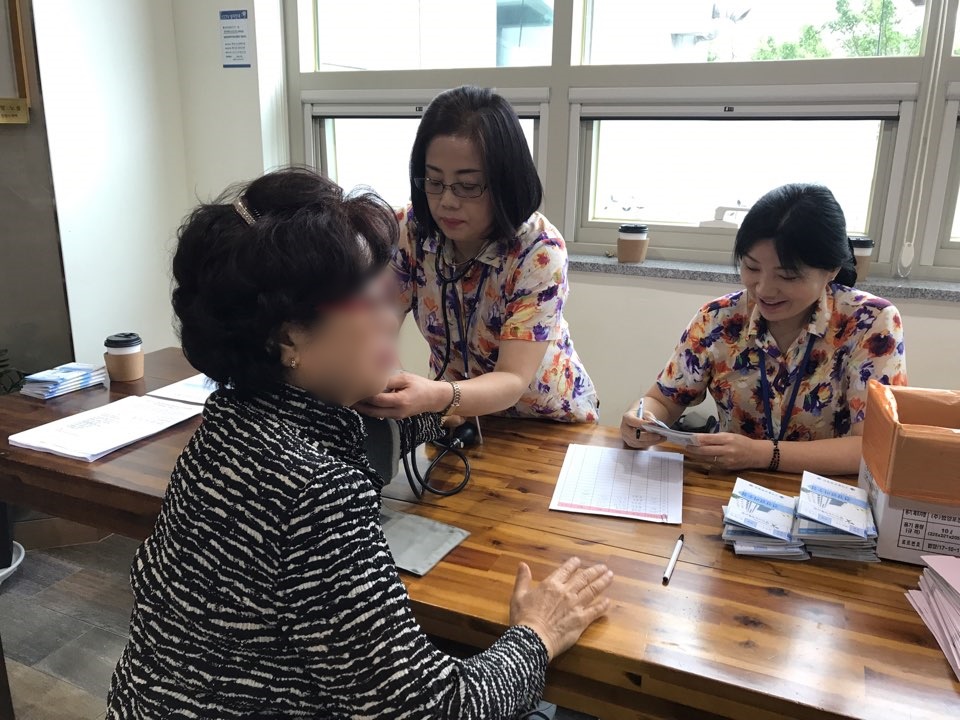 혈압 및 혈당검사, 의료상담 등 어르신들의 건강과 궁금증을 해결해 드리기 위해 노력하는 모습입니다^^