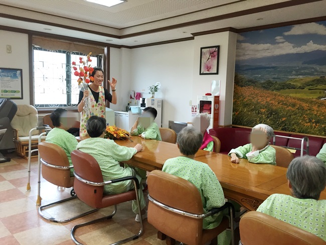 원예치료 선생님께서 수업에 대한 설명 후 어르신들께서 직접 완성하셨답니다^^