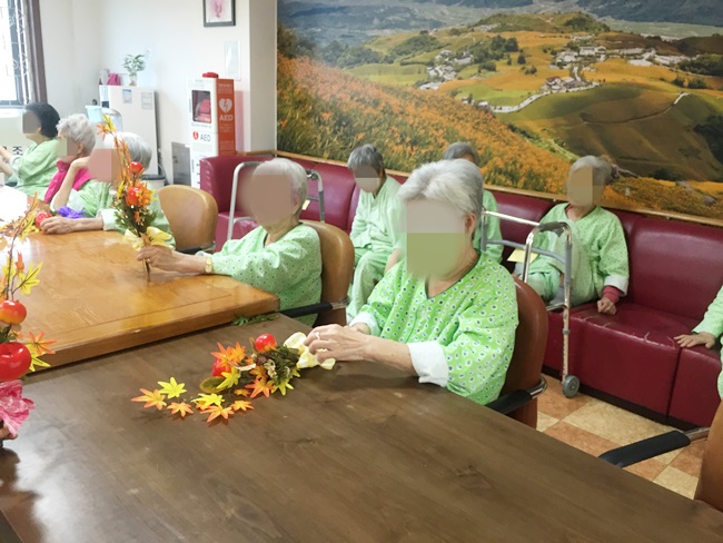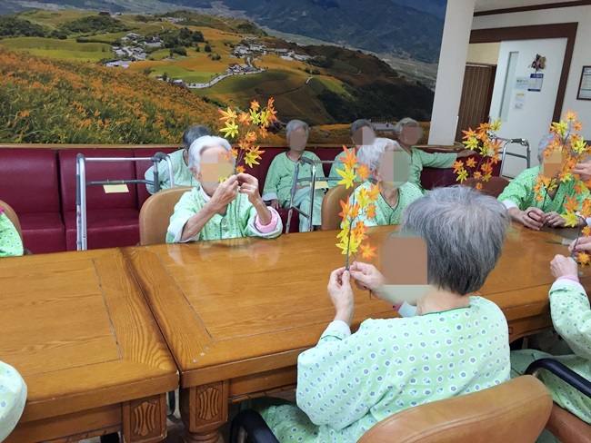 모형이지만 먹음직스러운 감과 색이 잘든 단풍을 보며 어르신들께서 즐거워하셨는데요.