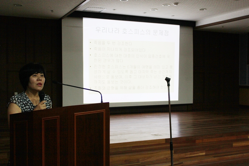 8월 23일, 강당에서 김숙사교수님의 강연으로 말기암환자 호스피스 교육을 실시하였습니다. ^^