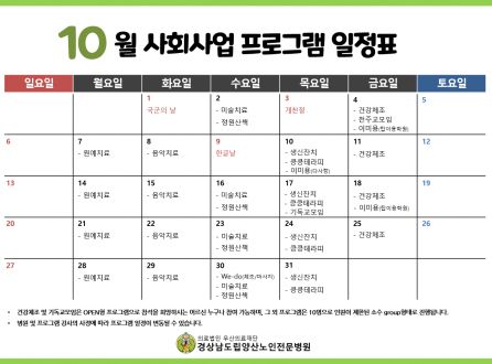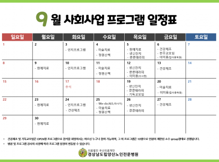 9월 프로그램 일정표