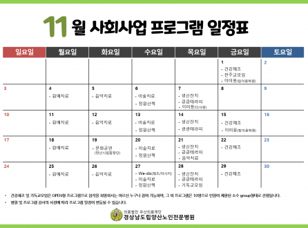 11월 프로그램 일정표