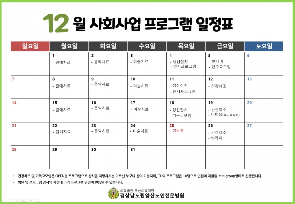 목록 12월 프로그램 일정표 페이지 정보 작성자최고관리자 댓글0 조회79 작성일25.11.28 14:35 본문 12월 프로그램 일정표 이전글1월 프로그램 일정표 26.01.20 다음글11월 프로그램 일정표 25.11.26 Comment 0 댓글목록 등록된 댓글이 없습니다.