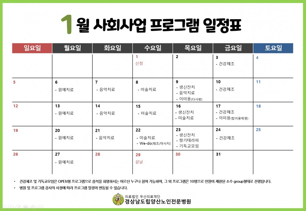 목록 25년 1월 프로그램 일정표 페이지 정보 작성자최고관리자 댓글0 조회244 작성일24.12.31 13:07 본문 1월 프로그램 일정표 이전글2월 프로그램 일정표 25.02.04 다음글12월 사회사업 프로그램 일정표 24.11.29 Comment 0 댓글목록 등록된 댓글이 없습니다.